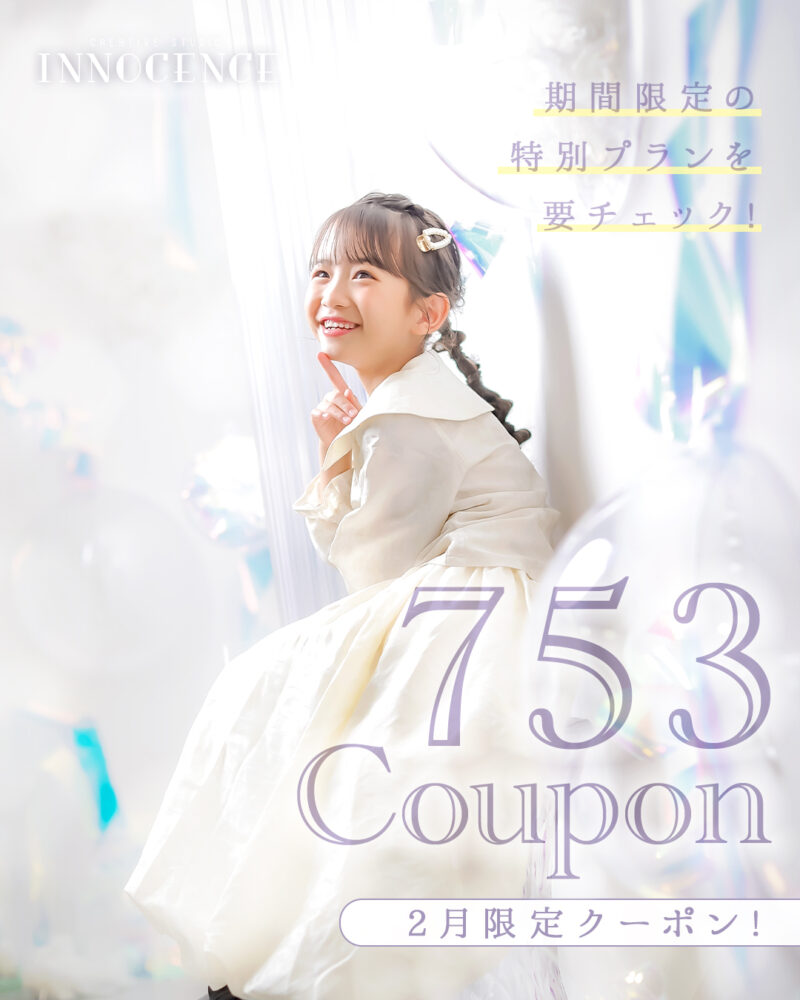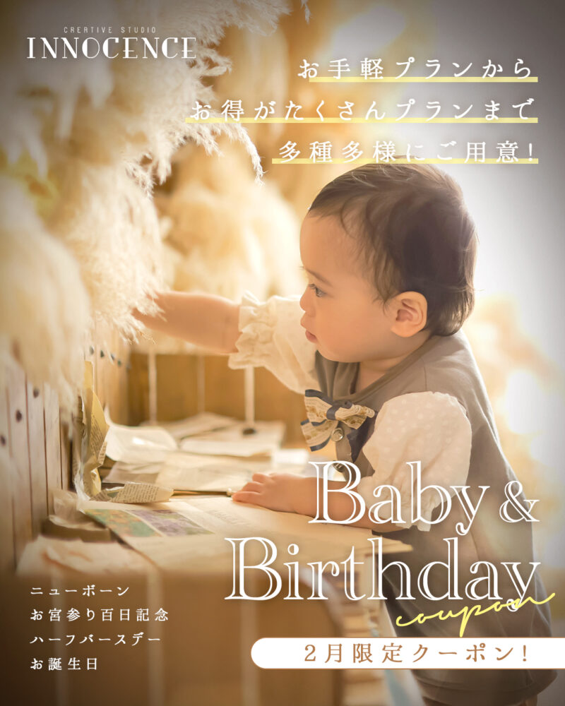 #1/2成人式 #マタニティ #七五三 #ハーフバースデー・お誕生日 #赤ちゃん #入園入学・卒園卒業 2026.01.23 【ALL EVENT】INNOCENCE 2月限定クーポン! ❖❖❖ 赤ちゃん・お誕生日撮影クーポン ❖❖❖ ▶こちらから特設ページをチェック! ❖❖❖ 七五三撮影クーポン ❖❖❖ ▶こちらから特設ページをチェック! ❖❖❖ 入園入学撮影クーポン ❖❖❖ ▶こちらから特設ページをチェック! ❖❖❖ マタニティ撮影クーポン ❖❖❖ ▶こちらから特設ページをチェック! 一覧に戻る
