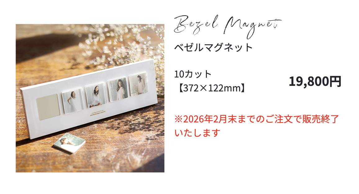 簡単マグネット着脱 写真はマグネット式の透明アクリルパーツに封入。カチッと嵌めるだけで、誰でも綺麗にレイアウトが可能です。