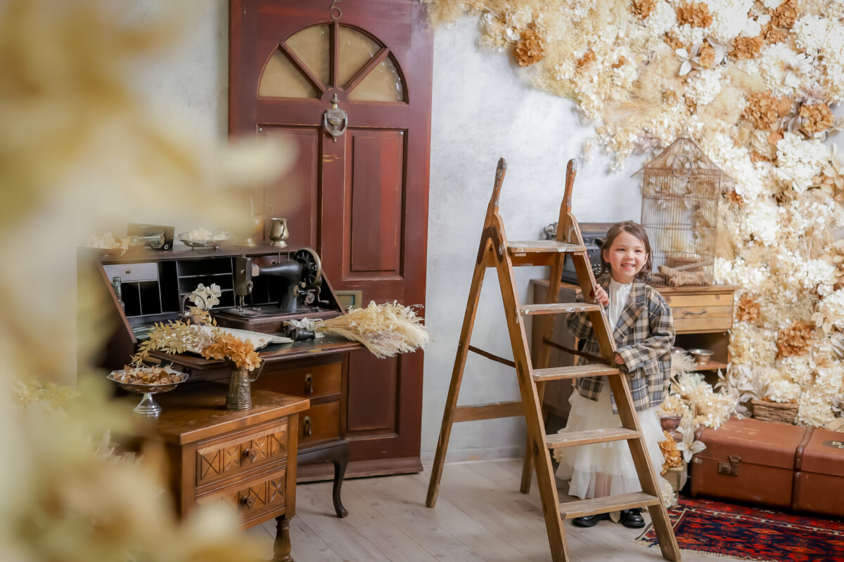 アンティーク&ドライフラワー、シンプル&ナチュラルな芸術的な空間演出されたスタジオの良さを どちらも体験していただけるように博多店、ガーデンズ千早店が統合移転! 自然光と定常光を駆使したこだわりの撮影と、 国内外問わず選び抜かれた衣装で、モデルのようなファッションフォトを撮影 七五三、赤ちゃん(お宮参り・百日記念)、ハーフバースデー、お誕生日、入園入学・卒園卒業、 十歳の祝い、マタニティ、ポートレート・家族写真など各種記念撮影をオシャレに。店舗前に4台分の駐車場がございます。